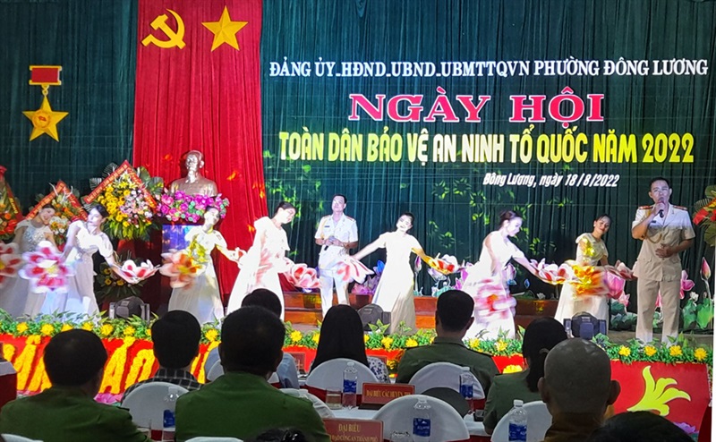 Chủ tịch UBND P.Đông Lương Nguyễn Chơn Thử phấn khởi cho biết qua 17 năm thực hiện Quyết định 521/QĐ-TTg của Thủ tướng Chính phủ về Ngày hội toàn dân bảo vệ ANTQ, phong trào toàn dân bảo vệ ANTQ trên địa bàn phường đã tạo được sức hút, sự lan toả mạnh mẽ trong các tầng lớp nhân dân.Trong 5 năm (từ năm 2017 đến nay), quần chúng nhân dân trên địa bàn phường đã cung cấp cho lực lượng CA 620 nguồn tin liên quan đến tình hình an ninh trật tự trên địa bàn, trong đó có 515 tin có giá trị; giúp cơ quan Công an điều tra khám phá 109/114vụ phạm pháp hình sự đạt tỷ lệ 95,6%, xử lý 506 vụ vi phạm hành chính đối với 676 đối tượng vi phạm, thu phạt 555.715.000 đồng; gọi hỏi răn đe 539 lượt đối tượng. Hàng năm, 100% hộ dân, các khu phố, nhà trường, cơ quan, đơn vị trên địa bàn phường đã đăng ký cam kết xây dựng gia đình, khu phố, nhà trường, cơ quan, đơn vị an toàn về ANTT. Các mô hình tự phòng, tự quản về ANTT được quần chúng nhân dân và các đoàn thể tích cực hưởng ứng tham gia. Hiện, trên địa bàn phường có 06 loại với 12 mô hình phòng, chống tội phạm hoạt động hiệu quả, góp phần không nhỏ giữ vững an ninh trật tự trên địa bàn. Đã xuất hiện nhiều tấm gương quần chúng, bảo vệ dân phố nêu cao tinh thần trách nhiệm, mưu trí, dũng cảm trong tấn công, trấn áp tội phạm, điển hình. Phát huy những kết quả đạt được, tại ngày hội, đại diện các khu phố tự tin, phấn khởi ký cam kết phát động thi đua thực hiện phong trào toàn dân bảo vệ ANTQ trên địa bàn phường.