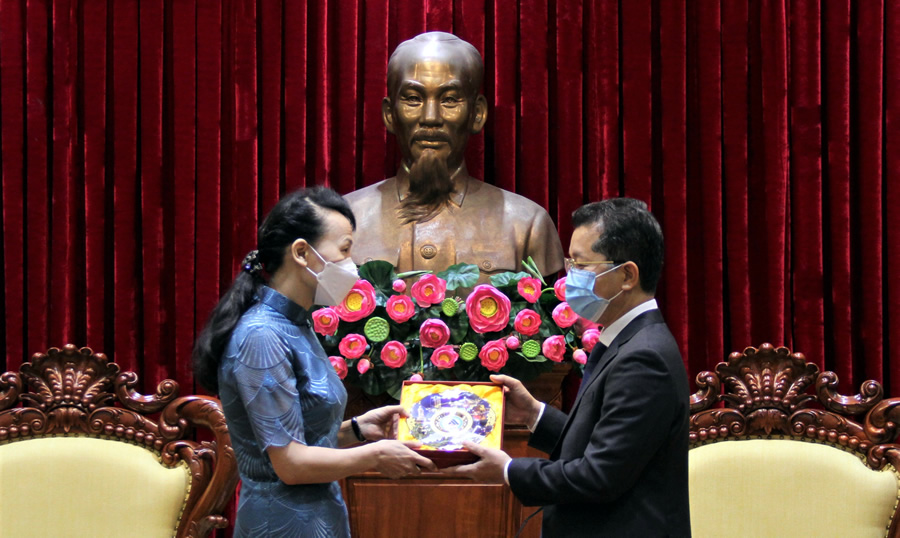 Bí thư Thành ủy Đà Nẵng Nguyễn Văn Quảng đón tiếp bà Đổng Bích Du - tân Tổng Lãnh sự Trung Quốc tại Đà Nẵng nhân dịp nhận nhiệm vụ mới tại thành phố. |