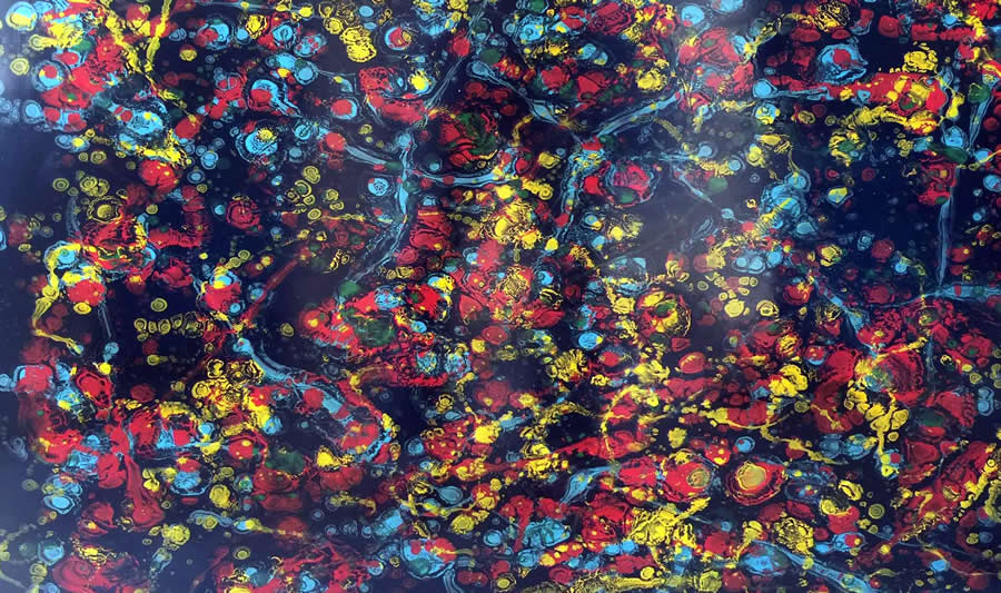 Với họa sĩ Trần Vĩnh Thịnh, người xem tranh từng được biết đến qua nhiều triển lãm của anh cùng những gam màu vàng đặc trưng, với chủ đề từ tâm linh tôn giáo đến văn hóa Á đông, từ thiết tha với sông núi đến tình yêu biển cả và môi trường. Tất cả được anh diễn tả bằng ngôn ngữ hội họa riêng biệt và nhất quán. Trong triển lãm lần này, những mảng màu xanh đã nhấn nhá xuất hiện trong màu vàng của anh, tạo nên một nhãn quan khác, làm nên những tương tác thú vị và sang trọng hơn, thể hiện trong 6 tác phẩm mà anh tham gia.
