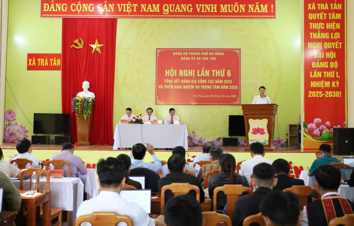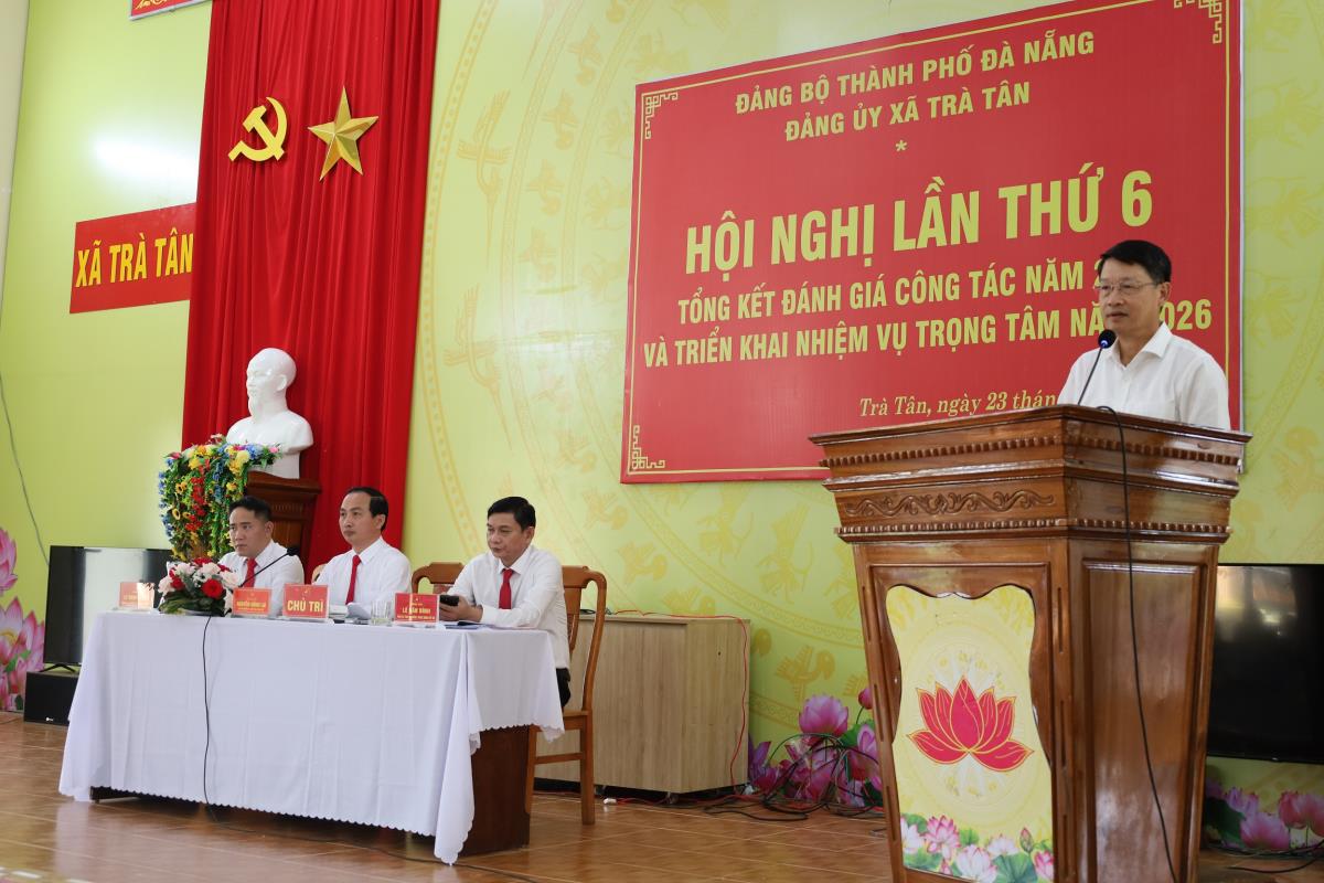 Sáng 23-12, Đảng ủy xã Trà Tân (TP Đà Nẵng) tổ chức Hội nghị tổng kết đánh giá tình hình kinh tế - xã hội, quốc phòng, an ninh, công tác xây dựng Đảng, xây dựng hệ thống chính trị năm 2025; triển khai nhiệm vụ trọng tâm năm 2026. Tham dự và phát biểu chỉ đạo hội nghị có Phó Bí thư Thành ủy Đà Nẵng Ngô Xuân Thắng.