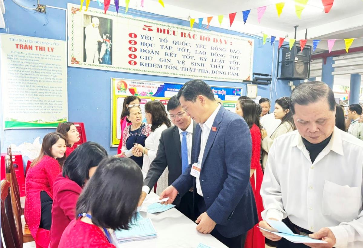 Sáng 15-3, đồng chí Trần Phước Sơn - Ủy viên Ban thường vụ Thành ủy, Phó Chủ tịch Thường trực HĐND TP, Phó Chủ tịch Thường trực Ủy ban bầu cử TP Đà Nẵng đã tham dự khai mạc, bỏ phiếu bầu cử đại biểu Quốc hội khóa XVI và đại biểu HĐND các cấp nhiệm kỳ 20226-2031 tại Tổ bầu cử số 2 phường Hải Châu ở Trường Tiểu học Trần Thị Lý.