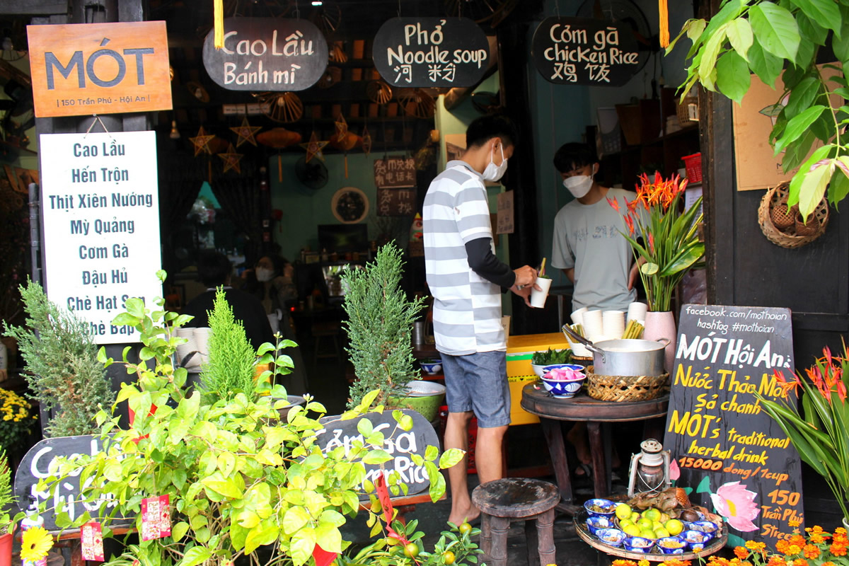 Nhiều tuyến đường dẫn vào khu vực phố cổ tấp nập với cảnh “ngựa xe như nước, áo quần như nem”, bởi từ các tuyến phố bên ngoài, các bãi giữ xe máy, ô-tô… đã ken đặc xe cộ của người dân và du khách. Hai bên đường trong khu vực phố cổ, các quán xá có đông du khách đến thưởng thức các món đặc sản như cao lầu, bánh bèo, chè thập cẩm… hay ngồi nhâm nhi cà phê… Ai nấy đều hớn hở tranh thủ chụp lại khoảnh khắc du xuân tại phố cổ Hội An thơ mộng vào những ngày đầu “mời khách đón xuân”.