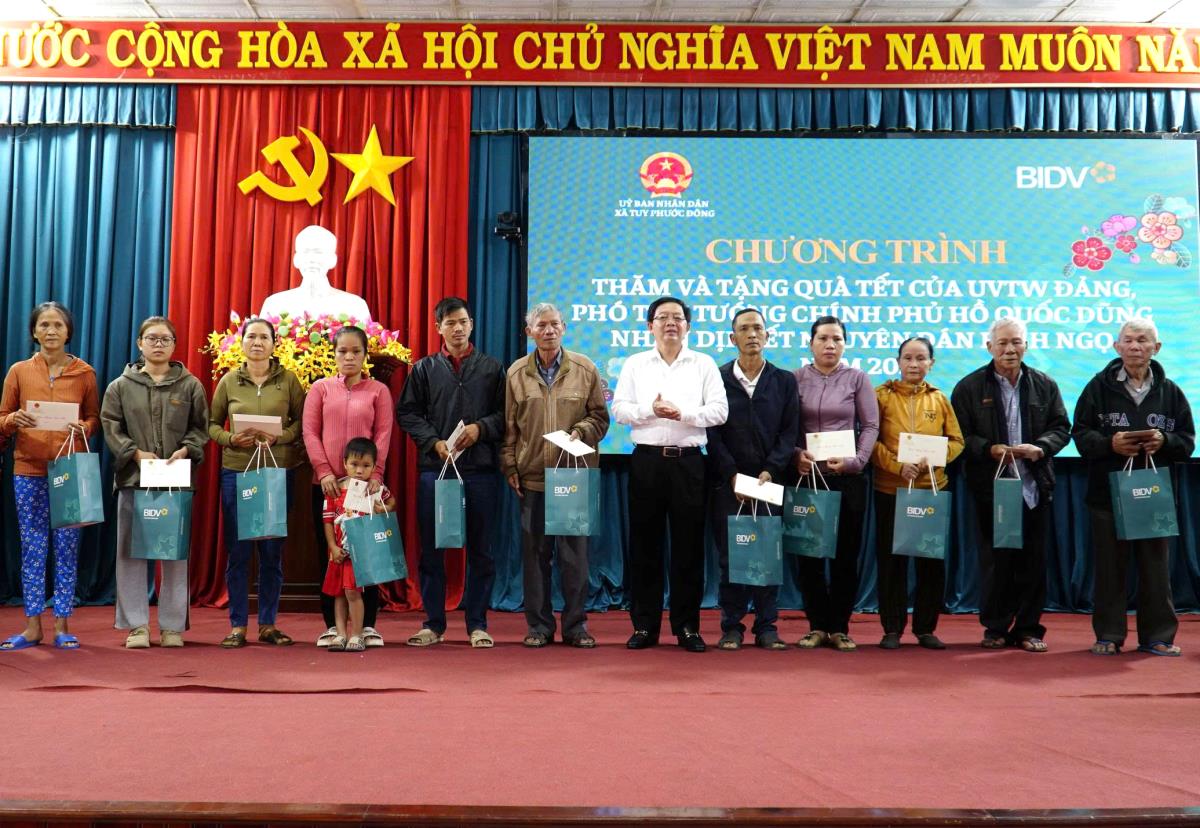 Báo cáo với Phó Thủ tướng, lãnh đạo xã Tuy Phước cho biết, sau khi được sáp nhập từ 5 đơn vị hành chính cũ, toàn xã hiện có hơn 1.300 đối tượng chính sách. Trong đó có 466 liệt sĩ, 204 thương binh – bệnh binh, 90 người hoạt động cách mạng bị địch bắt tù đày, 513 người có công giúp đỡ cách mạng; toàn xã có 49 Mẹ Việt Nam anh hùng, hiện còn 1 Mẹ đang sống và được chăm sóc, phụng dưỡng chu đáo. Tháng 11-2025, xã Tuy Phước chịu thiệt hại nặng nề do "thiên tai kép", với tổng giá trị thiệt hại ước trên 860 tỷ đồng. Toàn xã có 16 căn nhà bị sập hoàn toàn, 172 căn nhà bị tốc mái. Nhờ triển khai kịp thời "Chiến dịch Quang Trung", nhiều ngôi nhà đã được xây mới, sửa chữa, giúp người dân sớm ổn định cuộc sống, đón Tết. Địa phương cũng đã hoàn thành chi trả trợ cấp tháng 2 cho các đối tượng chính sách, với tổng kinh phí hơn 4,5 tỷ đồng; đồng thời tiếp nhận, trao tặng nhiều phần quà từ Trung ương và các nguồn xã hội hóa.