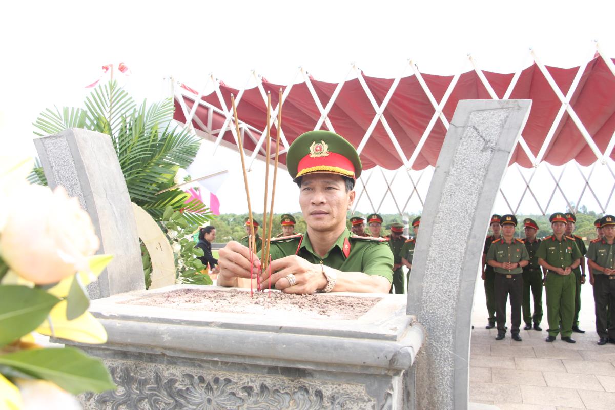 Trước anh linh các Anh hùng liệt sĩ, Tượng đài Mẹ VNAH, Thượng tá Trần Minh Nguyên cùng lãnh đạo, CBCS Phòng cảnh sát PCCC&CNCH kính cẩn nghiêng mình, dâng lên những vòng hoa tươi thắm, thắp nén hương thơm bày tỏ lòng thành kính, biết ơn vô hạn đối với các Anh hùng liệt sĩ đã hi sinh vì độc lập, tự do dân tộc; bày tỏ lòng thành kính biết ơn sâu sắc nhất đến các Mẹ VNAH.