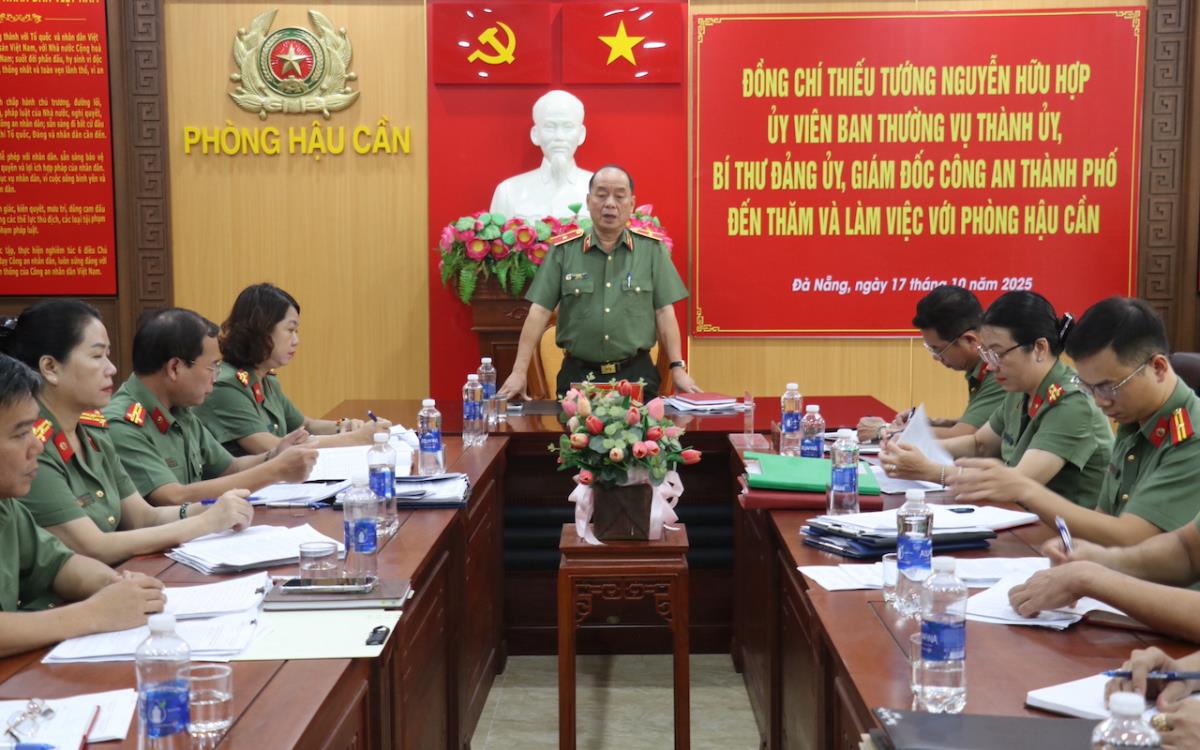 Đó là sự chỉ đạo của đồng chí Thiếu tướng Nguyễn Hữu Hợp- Uỷ viên Ban Thường vụ Thành uỷ, Bí thư Đảng uỷ, Giám đốc Công an TP Đà Nẵng tại buổi làm việc với Phòng Hậu Cần về kết quả công tác 9 tháng đầu năm 2025, triển khai nhiệm vụ công tác hậu cần Công an TP trong thời gian tới vào sáng hôm nay (17-10).
