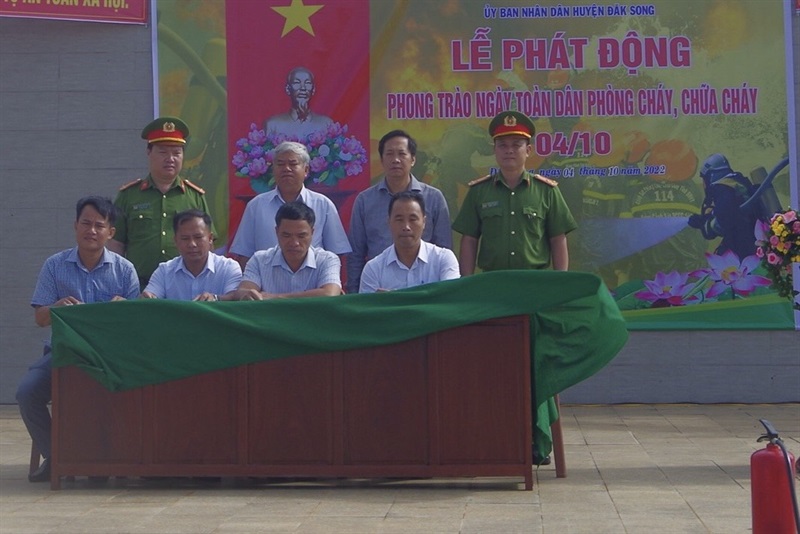 Tại Lễ phát động, đại diện lãnh đạo các xã, thị trấn đã ký giao ước thi đua thực hiện công tác quản lý nhà nước về PCCC trước sự chứng kiến của các đồng chí lãnh đạo cấp trên.