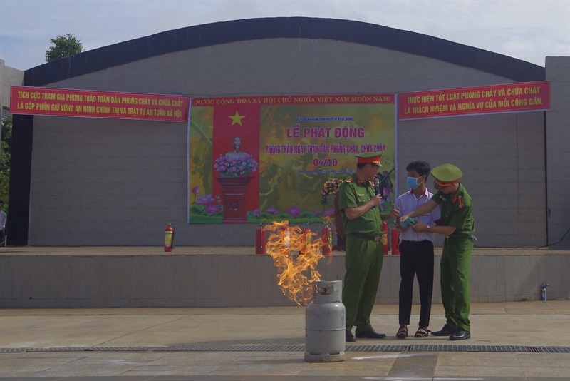Sau Lễ phát động, đại diện Phòng Cảnh sát phòng cháy, chữa cháy và cứu nạn, cứu hộ Công an tỉnh và Công an huyện Đắk Song đã hướng dẫn, thực tập phương án chữa cháy và CNCH với sự tham gia của các cơ quan, đơn vị, doanh nghiệp và Nhân dân trên địa bàn huyện...