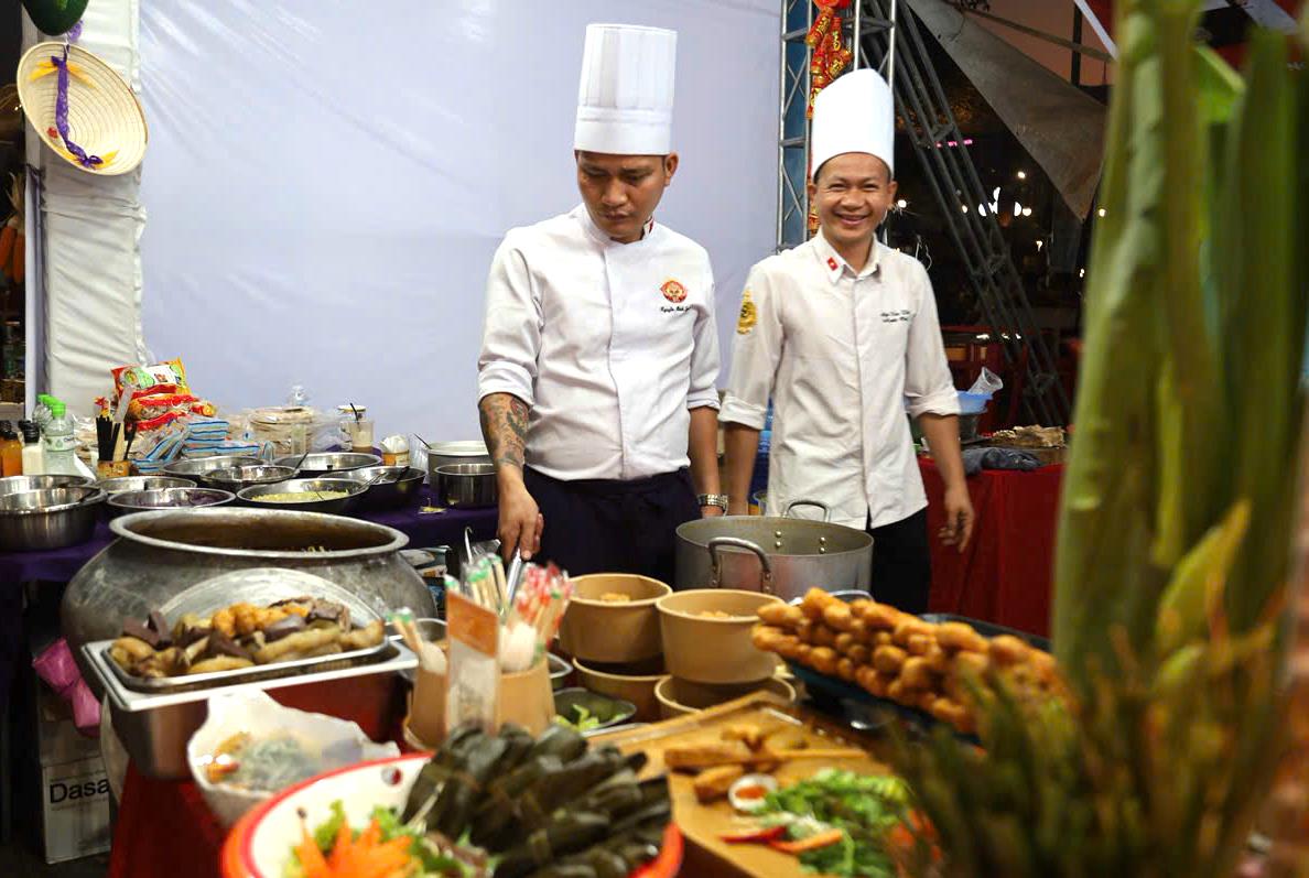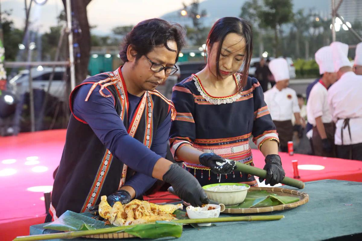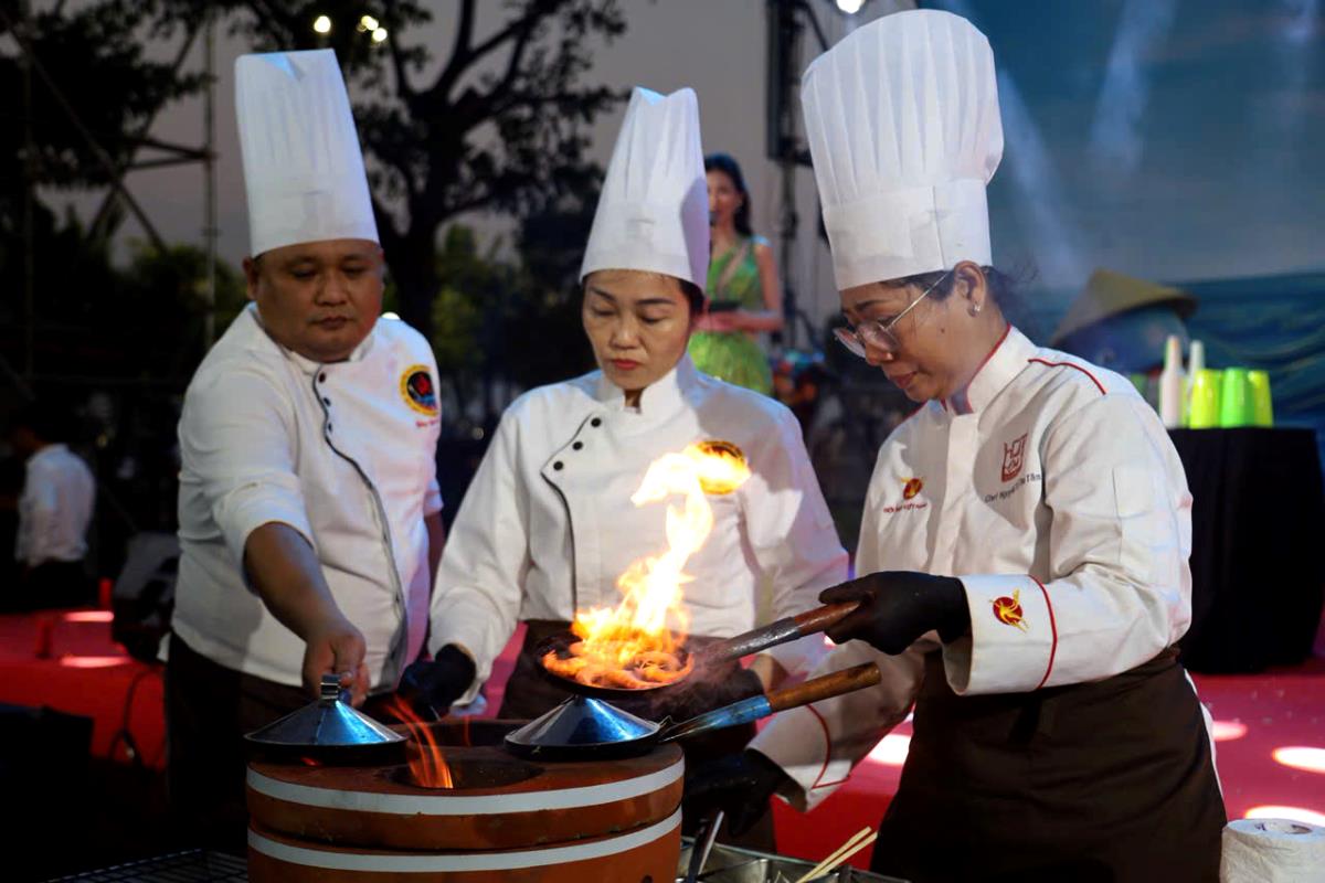 Điểm nhấn của ngày hội là không gian quảng diễn ẩm thực, nơi các nghệ nhân và đầu bếp trực tiếp chế biến những món ăn đặc trưng như cá ngừ đại dương, bánh xèo tôm nhảy, gà nướng cơm lam… Qua đó, du khách không chỉ thưởng thức mà còn được tìm hiểu câu chuyện văn hóa, lịch sử ẩn chứa trong từng món ăn.
