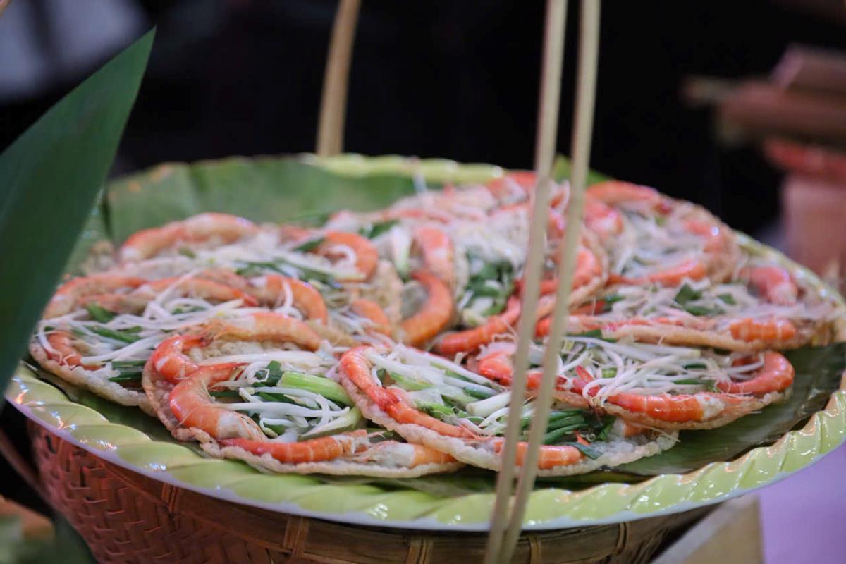 Biểu diễn chế biến món bánh xèo tôm nhảy