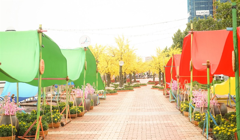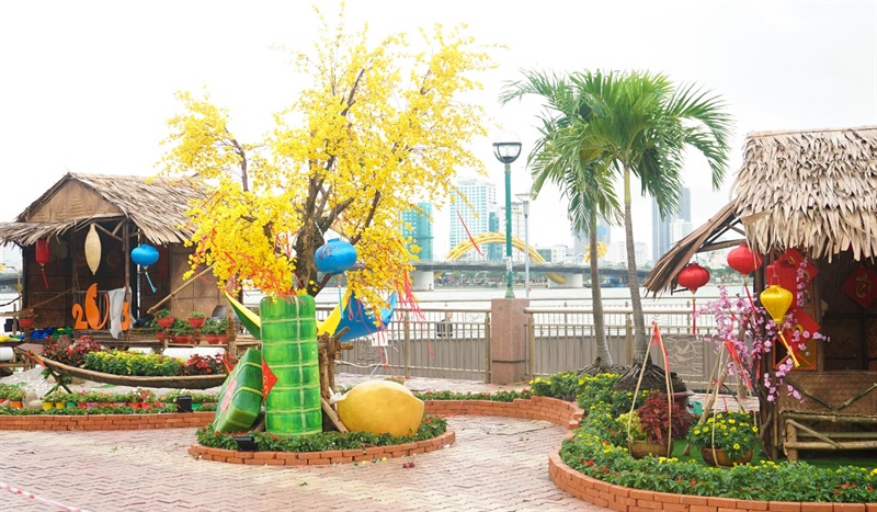 Đường hoa Tết được làm theo từng chủ đề khác nhau, với chủ đề “Đà Nẵng Tết xưa và nay” được bố trí tại khu vực Công viên Apec và vị trí dọc tuyến đường sát sông Hàn đối diện Công viên Apec. Chiều dài tuyến đường trang trí khoảng 150m. Bố cục chính trang trí chủ yếu trên vỉa hè phía sát sông Hàn, trang trí mở rộng qua công viên Apec.