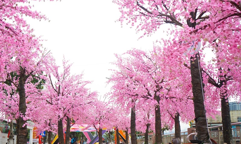 Trong chủ đề trang trí đường hoa có bố cục 16 cụm trang trí gồm hoa và tiểu cảnh. Trong đó lối vào là cánh cổng mang âm hưởng truyền thống nét văn hoá kiến trúc xưa. Xuyên qua rừng mai vàng, rừng đào thắm là khu vực Bố cục Linh vật trung tâm làm điểm nhấn cho đường hoa. Bên cạnh đó, các tiểu cảnh là sự kết hợp hài hòa, có điểm nhấn với các sự kiện khai xuân như: trưng bày tranh, ảnh, khai cọ đầu xuân… Kết thúc đường hoa là điểm dừng chân và những cánh cổng của tương lai với ý nghĩa khi bước qua cánh cổng này là bước tới một năm mới với các niềm hi vọng mới…