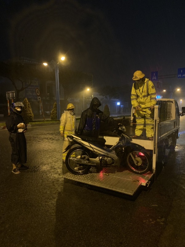 Trong đêm, các chiến sĩ Công an quận Hải Châu, Thanh Khê, Sơn Trà, Cẩm Lệ tất bật cùng lực lượng Cảnh sát PCCC&CNCH Công an Đà Nẵng khẩn tốc vượt nước xiết, giăng dây vượt qua đường, cố gắng cứu nạn bằng cách quăng dây thừng để người dân trong các căn nhà bị ngập sâu bám vào, thoát khỏi dòng nước xoáy. Đồng thời huy động nhiều phương tiện có mặt khắp các khu vực thấp trũng để hỗ trợ sơ tán người dân ra khỏi khu vực nguy hiểm.