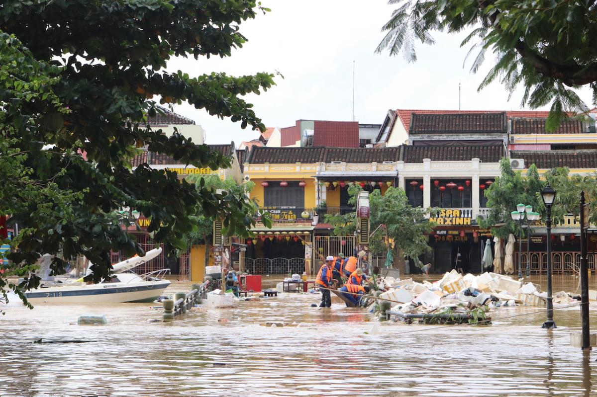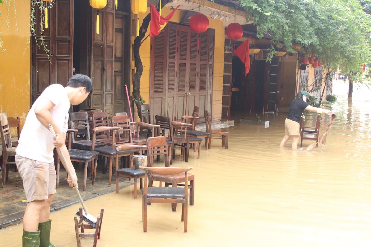 Sáng 31- 10, sau 4 ngày bị ngập chìm trong cơn “đại hồng thủy”, nhiều tuyến đường tại phố cổ Hội An (phường Hội An, TP Đà Nẵng) nước đã rút, song một số nơi trũng thấp vẫn còn bị ngập bởi mực nước trên sông Hoài vẫn còn khá cao.