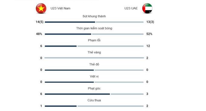 Tỷ số trận đấu: U23 Việt Nam 3-2 U23 UAE (hiệp 1: 1-1).