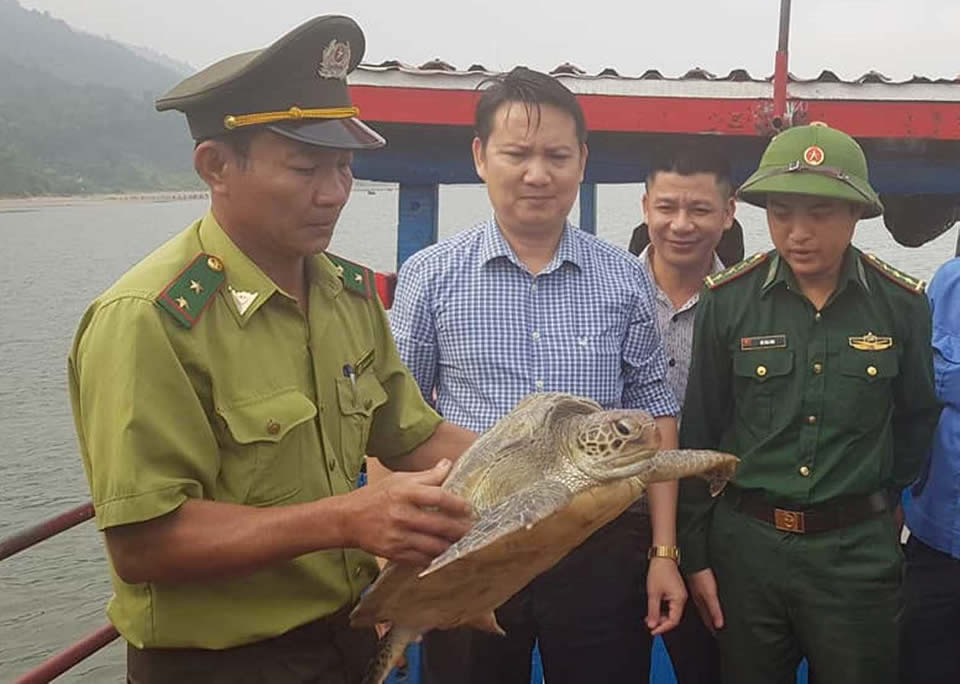 Phát hiện một cá thể rùa biển dài hơn 60cm, nặng hơn 20kg "lạc đường" tại bờ biển Cửa Sót (xã Thạch Kim, H. Lộc Hà, Hà Tĩnh), ngư dân Nguyễn Đức Đồng (1975, trú xã Thạch Bàn, H. Thạch Hà) mang giao nộp Đồn BP Cửa Sót. Xác định đây là loại động vật quý hiếm nằm trong Sách Đỏ Việt Nam, thuộc danh mục các loại động vật hoang dã có nguy cơ tuyệt chủng nên sáng 8-4, BQL các cảng cá Hà Tĩnh phối hợp Đồn BP Cửa Sót và các cơ quan chức năng khác tổ chức thả cá thể rùa biển này về môi trường tự nhiên.