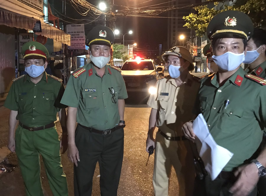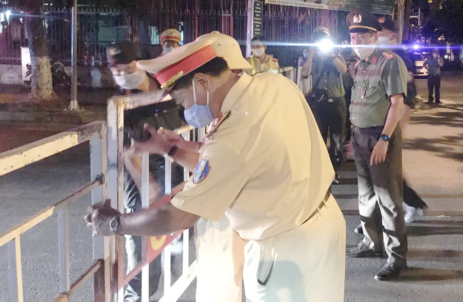Đại tá Trần Đình Chung, Phó giám đốc CATP Đà Nẵng chỉ đạo tại các chốt chống dịch.