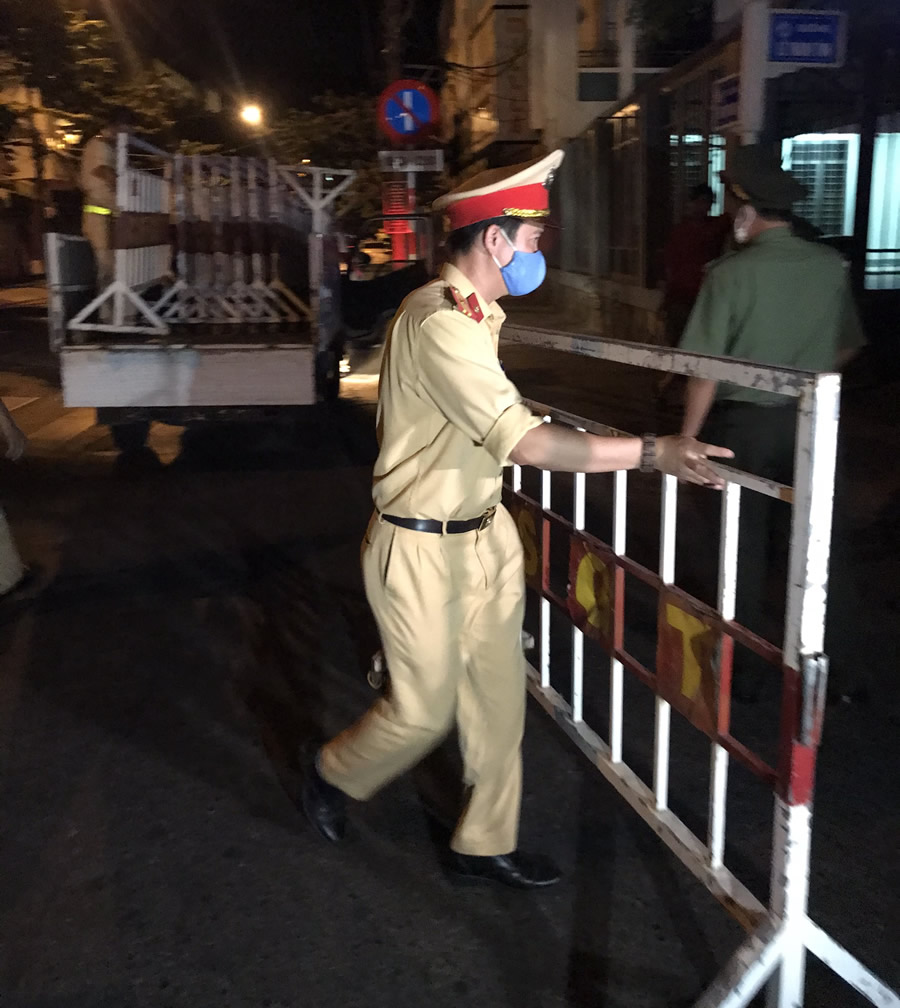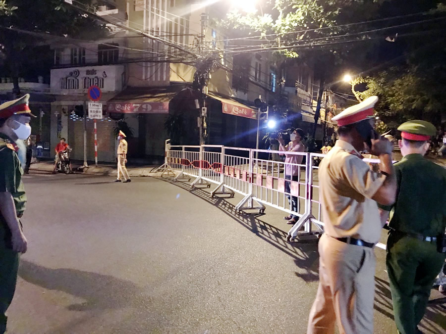 Trước giờ phong toả, 0 giờ ngày 28-7, Đại tá Trần Đình Chung, Phó giám đốc CATP Đà Nẵng đã đi thị sát tại các chốt kiểm soát xung quanh 3 bệnh viện: Bệnh viện C (Bộ Y tế), Bệnh viện Đà Nẵng, Bệnh viện Chỉnh hình và Phục hồi chức năng Đà Nẵng. Đến hiện trường, nhiều điểm phát sinh làm thay đổi hướng phong toả của các tuyến đường so với dự kiến ban đầu. Điểm chốt thay đổi là cắt ngang ngã tư Quang Trung- Nguyễn Thị Minh Khai, cắt ngang ngã tư Hải Phòng- Nguyễn Thị Minh Khai. Việc triển khai hướng cắt ngang đường đã đảm bảo tối đa việc người dân ra vào.