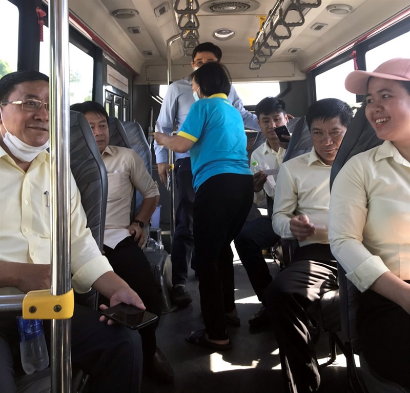 Cán bộ Trung tâm Điều hành Đèn tín hiệu sử dụng xe buýt cho các hoạt động nhân kỷ niệm 75 năm ngày Thương binh – Liệt sỹ (27/7/1947 - 27/7/2022)
