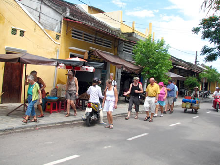 Khách du lịch nước ngoài thăm phố cổ Hội An. |