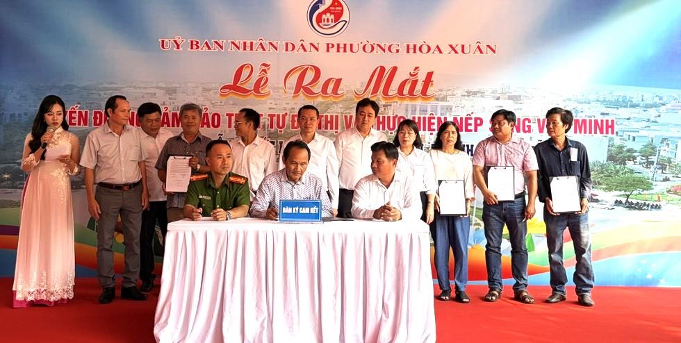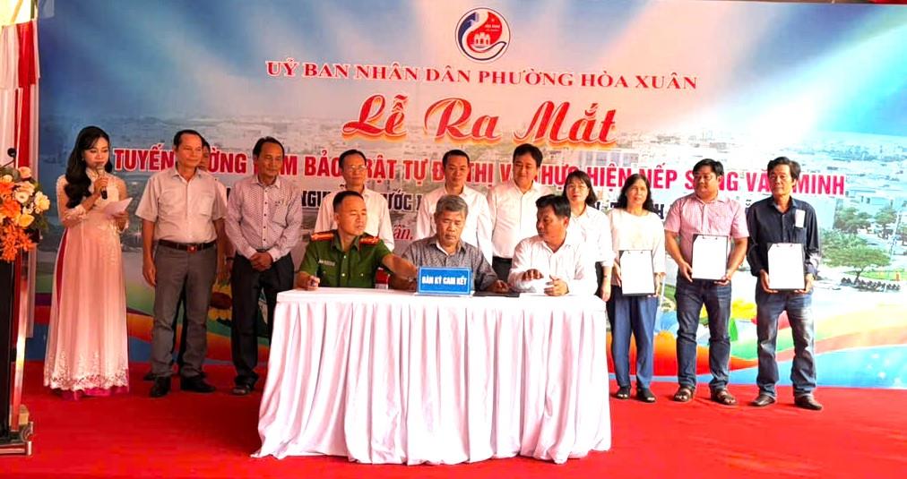 Tại buổi lễ, lực lượng chức năng cùng các tổ dân phố ký cam kết duy trì đảm bảo TTĐT & thực hiện nếp sống văn minh tuyến đường kiểu mẫu Nguyễn Phước Lan.