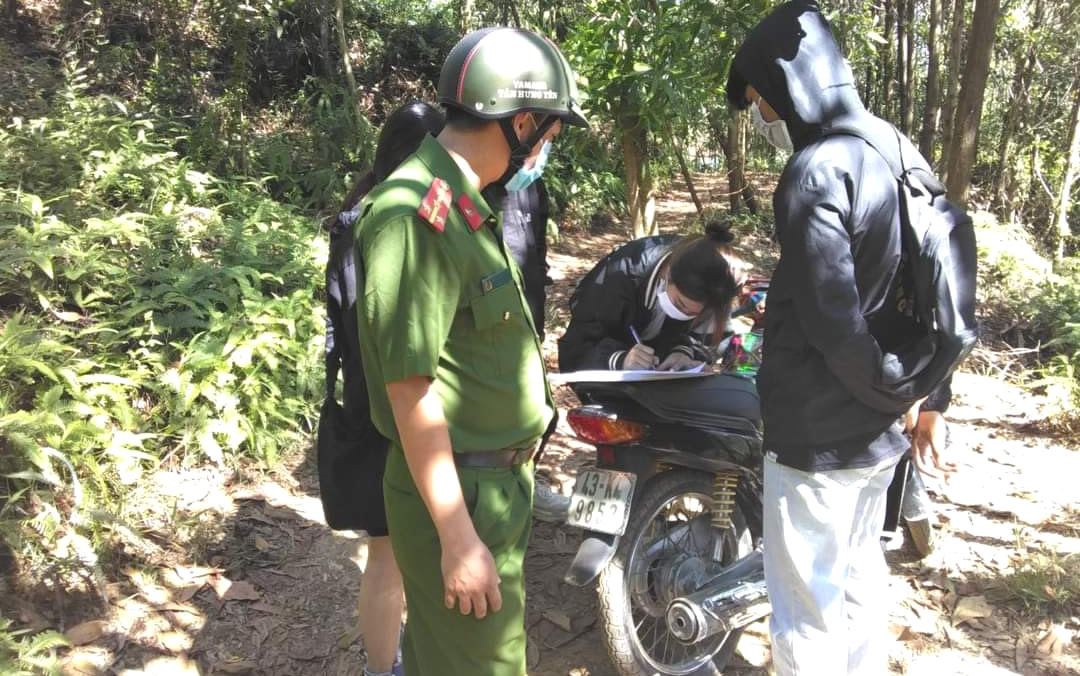 Lực lượng Công an xã kiểm tra, xử lý các trường hợp vi phạm. |