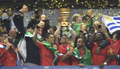 | Các cầu thủ PSG ăn mừng chức vô địch Cúp Liên đoàn Pháp. |