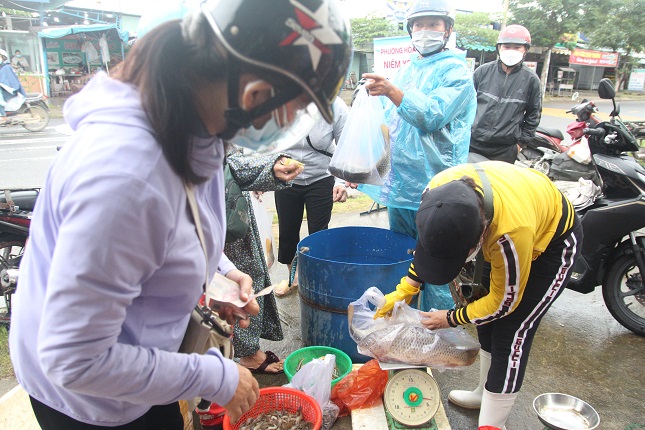 Điểm hỗ trợ tiêu thụ thủy sản cho bà con nuôi cá lồng bè được mở bán tại đường Đinh Gia Trinh – Võ An Ninh.