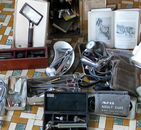 Những dụng cụ y khoa của bác sĩ Phạm Ngọc Diệp còn được lưu giữ.