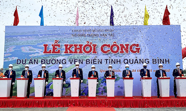 Sáng 24-1, tại thôn Tân Thuận, xã Ngư Thủy Bắc (Lệ Thủy), Sở Giao thông Vận tải tỉnh Quảng Bình tổ chức lễ khởi công Dự án thành phần 1 - Đường ven biển thuộc Dự án Đường ven biển và cầu Nhật Lệ 3 tỉnh Quảng Bình.