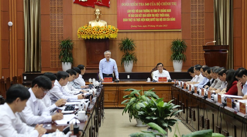 Báo cáo của Đoàn kiểm tra 540 của Bộ Chính trị đánh giá, Ban Thường vụ Tỉnh ủy Quảng Nam đã lãnh đạo, chỉ đạo và tổ chức triển khai thực hiện các Nghị quyết của Đảng đã đạt được một số kết quả. Trong quá trình kiểm tra, các buổi làm việc được tiến hành nghiêm túc, khách quan, có trách nhiệm; không khí làm việc cởi mở, các ý kiến phát biểu dân chủ, thẳng thắn, mang tính xây dựng, góp ý, hướng dẫn; việc giải trình, bổ sung của lãnh đạo địa phương, cơ quan, đơn vị có trọng tâm, trách nhiệm; đi vào đúng vấn đề cần quan tâm. Ban Thường vụ Tỉnh ủy Quảng Nam bám sát chỉ đạo của Trung ương, chủ động xây dựng kế hoạch nghiên cứu, học tập, quán triệt, tuyên truyền và triển khai thực hiện Nghị quyết Đại hội XIII của Đảng với tinh thần khẩn trương, nghiêm túc, chất lượng và hiệu quả, sáng tạo, đảm bảo đúng định hướng, tạo sự thống nhất về nhận thức và hành động trong Đảng bộ và sự đồng thuận trong nhân dân.