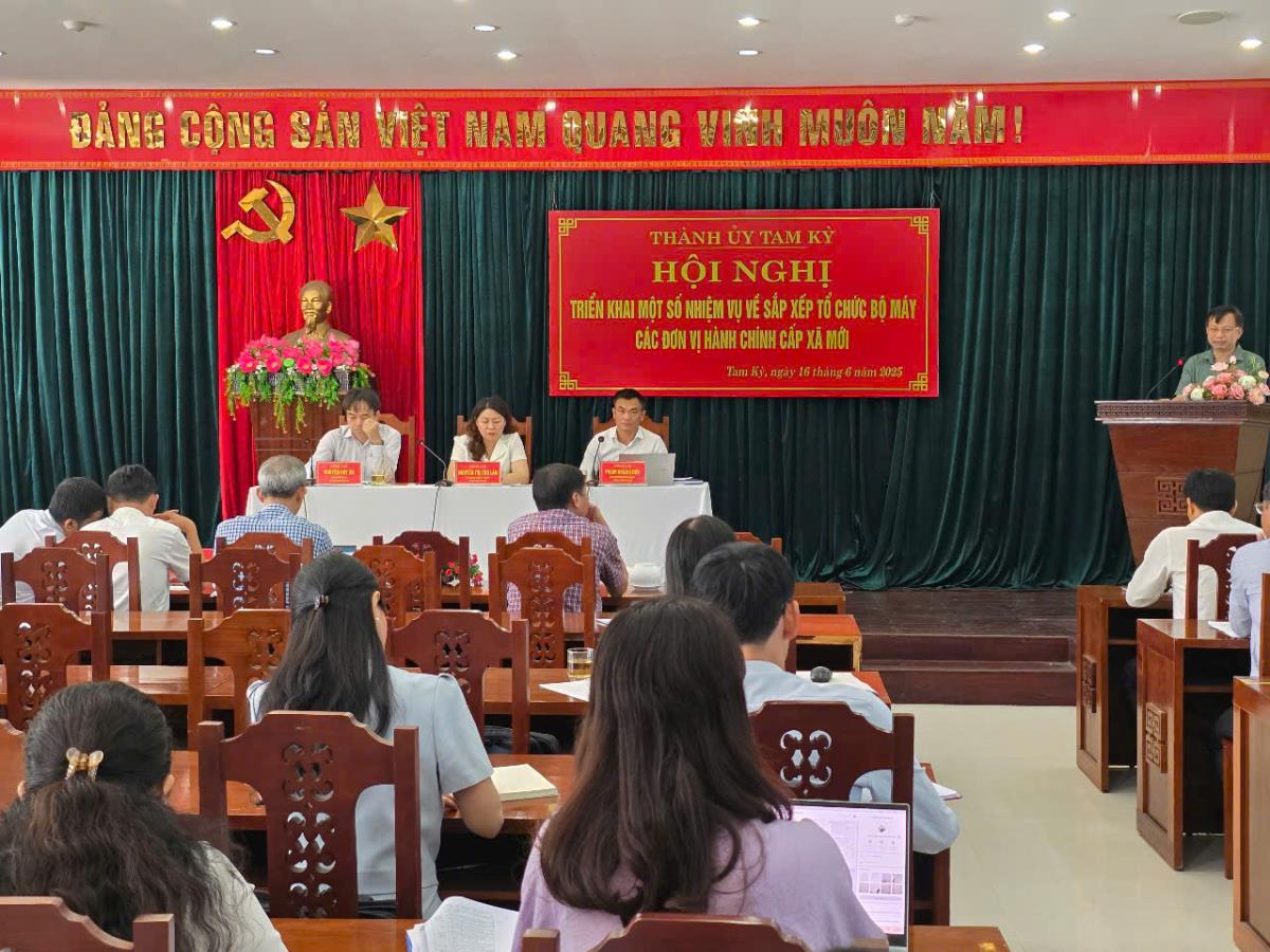 Sáng nay (16-6), Ban Thường vụ Thành ủy Tam Kỳ (Quảng Nam) tổ chức Hội nghị triển khai một số nhiệm vụ về sắp xếp, tổ chức bộ máy các đơn vị hành chính cấp xã mới đối với 4 phường sau sáp nhập ở Tam Kỳ, gồm phường Tam Kỳ, Bàn Thạch, Quảng Phú và Hương Trà.