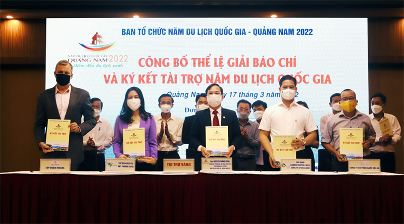 Tại buổi lễ, đại diện Ban tổ chức Năm du lịch Quốc gia - Quảng Nam 2022, ông Nguyễn Thanh Hồng (Phó trưởng ban) đã ký kết với các đơn vị tài trợ kim cương gồm: Tập đoàn Thiên Minh, Tập đoàn Mặt trời SunGroup, Tập đoàn T&T; các đơn vị tài trợ vàng gồm: Tập đoàn Hoiana, Tập đoàn đầu tư Việt Phương, Cty CP Gami Hội An và Cty CP BCG Land; các đơn vị tài trợ bạc gồm: Tổng Cty hàng không Việt Nam, Cty DB (cổ đông sáng lập Tập đoàn Ecopark), Tập đoàn đầu tư địa ốc Nova, Cty CP đầu tư khai thác nhà ga Quốc tế sân bay Đà Nẵng (AHT) và nhiều đơn vị tài trợ đồng khác.