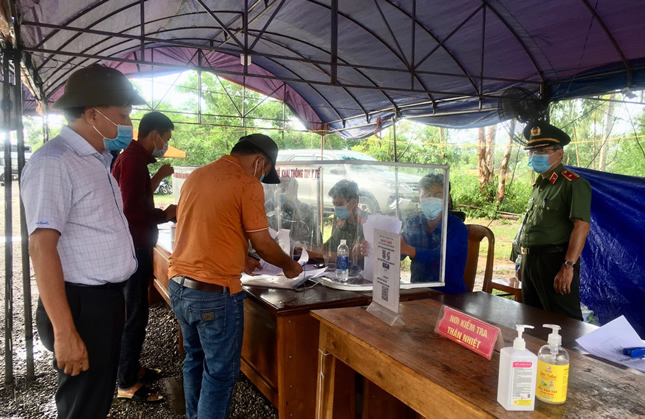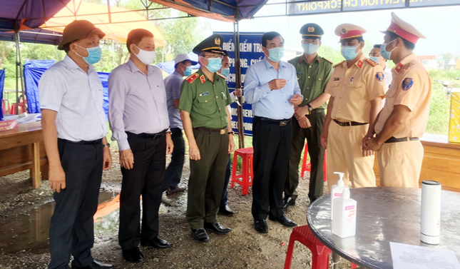 Lãnh đạo tỉnh Quảng Nam kiểm tra, động viên lực lượng làm nhiệm vụ tại các chốt kiểm soát, ngăn ngừa dịch bệnh COVID-19. |