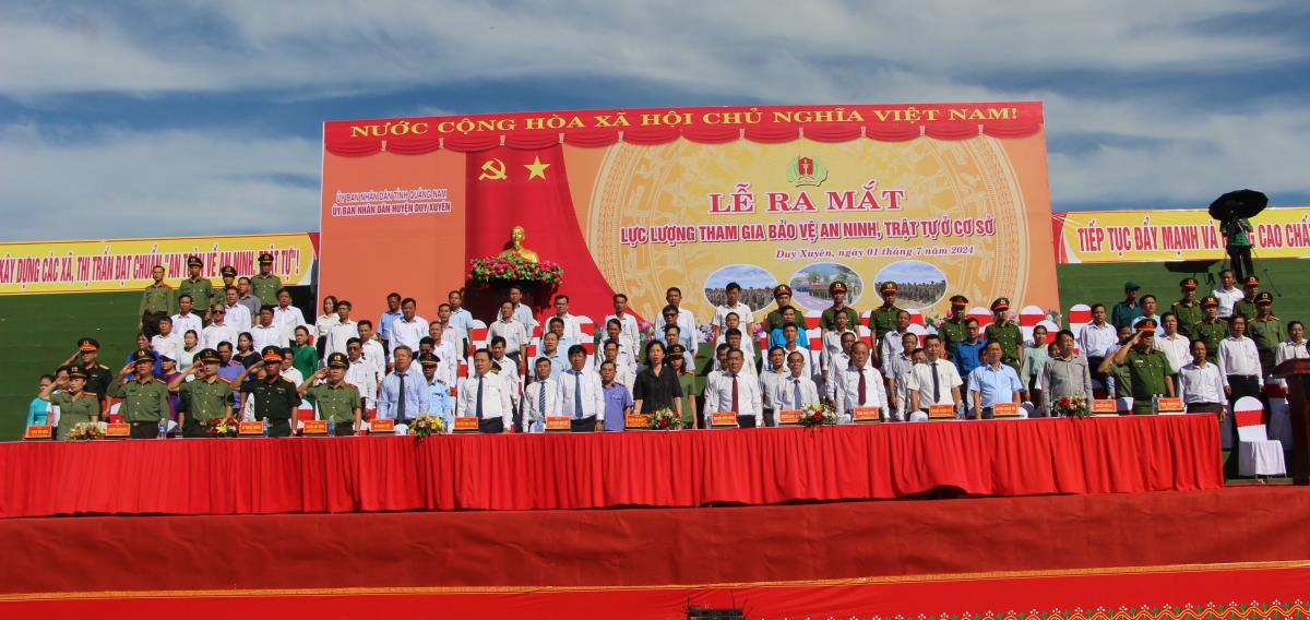 Sáng 1-7, tại huyện Duy Xuyên (Quảng Nam) diễn ra Lễ ra mắt Lực lượng tham gia bảo vệ an ninh trật tự (ANTT) ở cơ sở. Phó Chủ tịch Hội LHPN Việt Nam, Ủy viên Ban Chỉ đạo Thực hiện phong trào Toàn dân bảo vệ an ninh tổ quốc Trung ương Nguyễn Thị Minh Hương; Bí thư Tỉnh ủy Lương Nguyễn Minh Triết, Thiếu tướng Nguyễn Đức Dũng – Giám đốc Công an tỉnh dự buổi Lễ.
