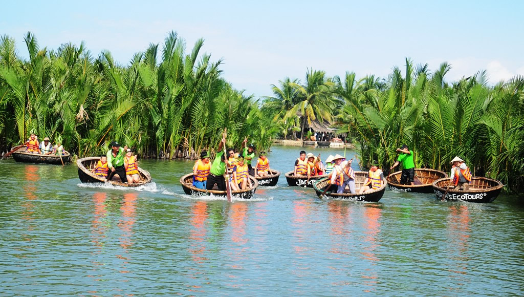 Du khách tham quan rừng dừa Bảy Mẫu. |