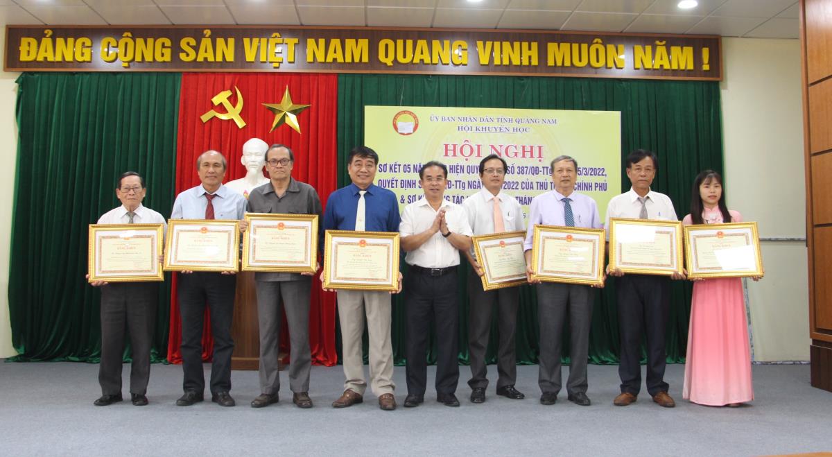 Dịp này, Chủ tịch UBND tỉnh Quảng Nam tặng Bằng khen cho 6 tập thể, 10 cá nhân; Trung ương Hội khuyến học Việt Nam tặng Kỷ niệm chương “Vì sự nghiệp khuyến học” cho 25 cá nhân và Hội khuyến học tỉnh tặng Giấy khen cho 30 tập thể, 60 cá nhân đạt thành tích trong 5 năm thực hiện Quyết định số 387, Quyết định số 677 của Thủ tướng Chính phủ.