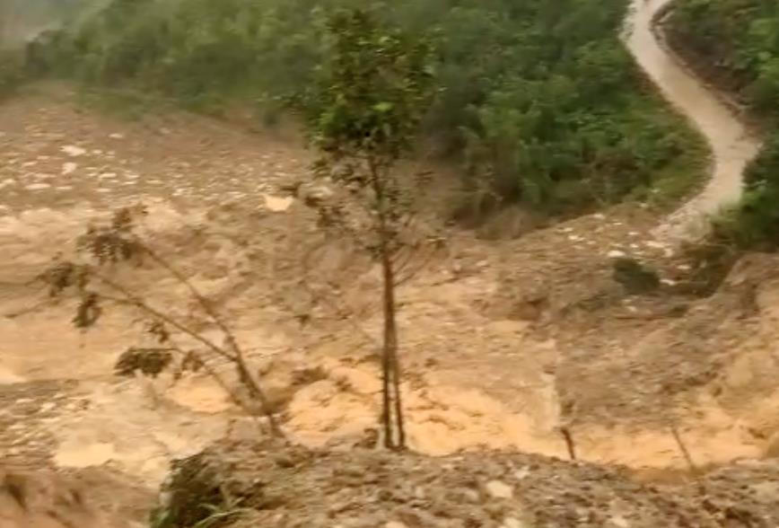 Tại hiện trường, khu vực sạt lở kéo dài khoảng 3km dọc theo một con suối nhỏ, đất đá tràn xuống khu vực sản xuất và sinh sống của người dân.