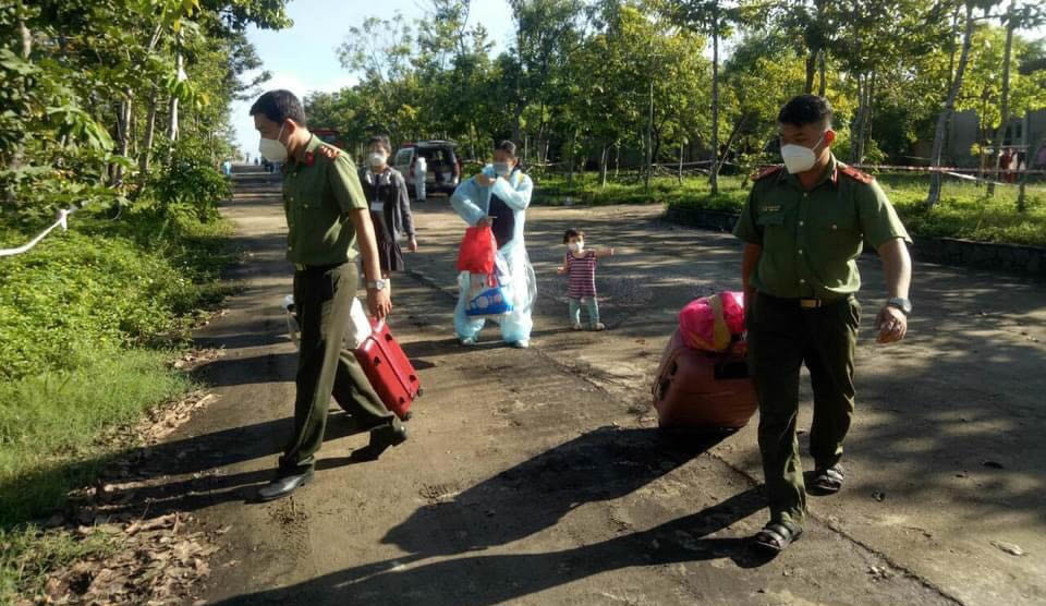 CBCS Công an tỉnh Quảng Ngãi hỗ trợ vận chuyển hành lý cho các thai phụ nhận phòng tại Khu du lịch Thiên Đàng tại huyện Bình Sơn (Quảng Ngãi) |