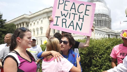 Những người ủng hộ xuống đường kêu gọi Quốc hội Mỹ thông qua thỏa thuận hạt nhân lịch sử với Iran. Ảnh: Reuters |