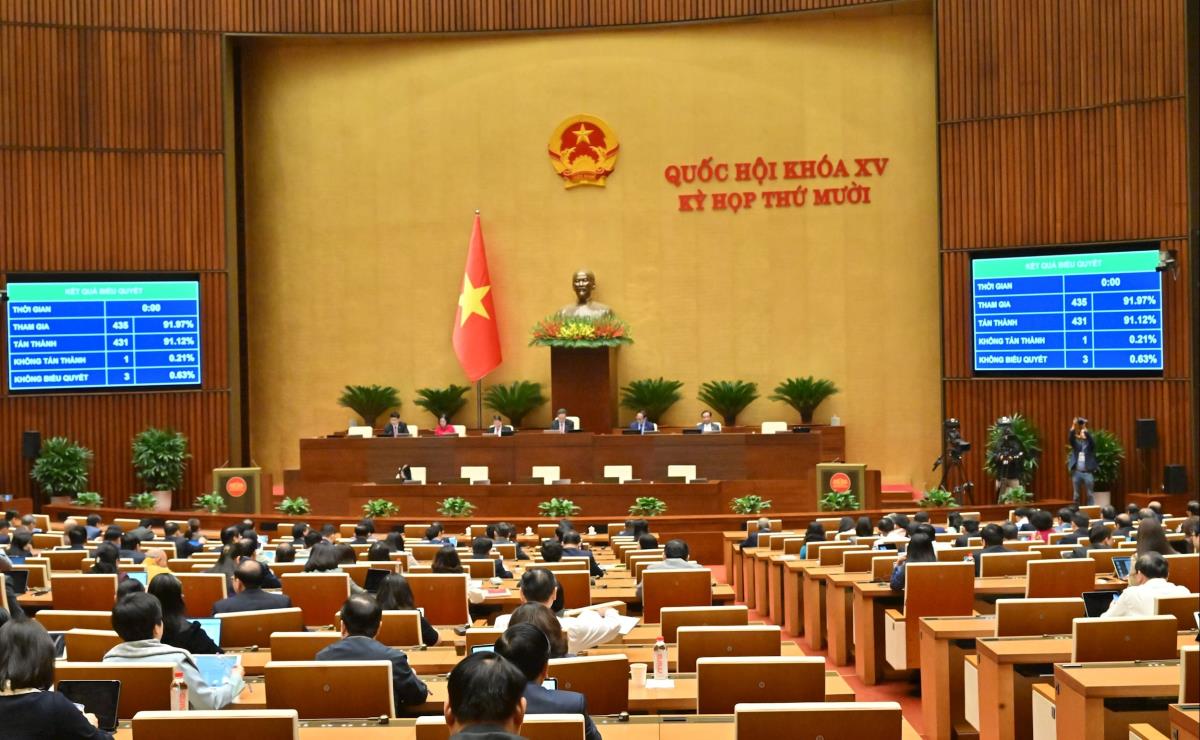 Sáng 11-12, Quốc hội đã thông qua Nghị quyết sửa đổi, bổ sung một số điều của Nghị quyết số 136/2024/QH15 về thí điểm một số cơ chế, chính sách đặc thù phát triển thành phố Đà Nẵng với 442 đại biểu (ĐB) tán thành, chiếm 93,45% tổng số ĐB Quốc hội.