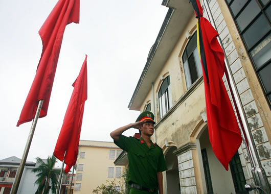 CA TP Đồng Hới (Quảng Bình) treo cờ rủ tưởng niệm Đại tướng Võ Nguyên Giáp. |