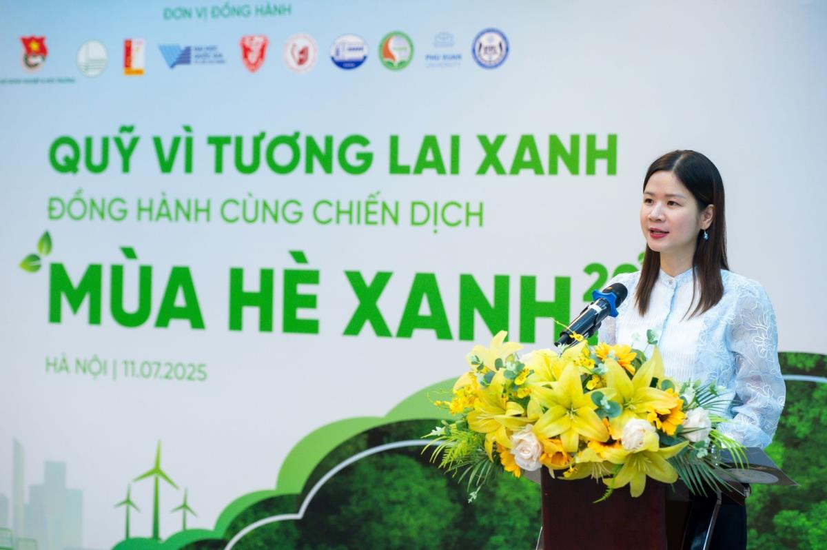 TS. Lê Thái Hà, Giám đốc Điều hành Quỹ Vì tương lai xanh, cho biết: “Đồng hành cùng chiến dịch Mùa hè Xanh 2025 là một trong những hoạt động điểm nhấn để mở đầu năm thứ 3 hoạt động của Quỹ Vì tương lai xanh. Từ chiến dịch, chúng ta sẽ chứng kiến những thay đổi tích cực, những nụ cười rạng rỡ và những ước mơ được thắp sáng từ sức trẻ, lòng nhiệt huyết và khát khao cống hiến vì một Việt Nam xanh hơn, tươi đẹp hơn của các bạn đoàn viên thanh niên”.