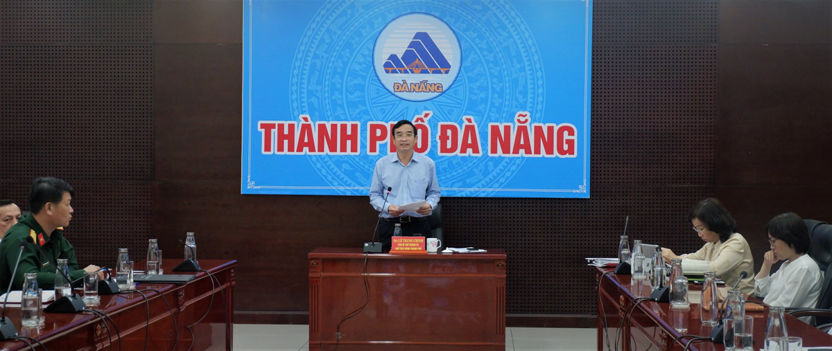 Chủ tịch UBND TP Lê Trung Chinh phát biểu tại điểm cầu Đà Nẵng. |