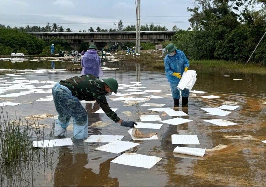 Bên cạnh đó, đơn vị phối hợp với chính quyền địa phương và lực lượng chuyên môn huy động, sử dụng phương tiện, thiết bị chuyên dụng để khoanh vùng khu vực bị ảnh hưởng thu gom dầu tràn theo đúng quy trình kỹ thuật; triển khai các biện pháp xử lý môi trường giảm thiểu tác động đến hệ sinh thái. Đến nay, các đơn vị đã khoanh vùng, ngăn chặn không để dầu lan rộng.