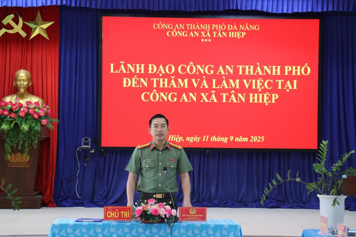 Ngày 11- 9, Đại tá Nguyễn Đại Đồng- Phó Bí thư Đảng ủy, Phó Giám đốc Công an TP Đà Nẵng đã có buổi làm việc với Công an xã Tân Hiệp nhằm đánh giá tình hình, kết quả thực hiện các mặt công tác trong thời gian qua; kết quả sau hơn 2 tháng thực hiện việc sáp nhập; những khó khăn, vướng mắc, kiến nghị, đề xuất để chia sẻ, tháo gỡ, giải quyết; đồng thời, chỉ đạo thực hiện các mặt công tác trọng tâm trong thời gian tới.