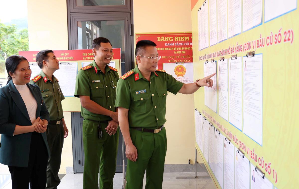 Tại xã Hiệp Đức, Đoàn công tác đã nghe báo cáo công tác chuẩn bị, đồng thời kiểm tra việc xây dựng và triển khai phương án bảo đảm an ninh, an toàn tại các khu vực bỏ phiếu; công tác bố trí lực lượng bảo vệ vòng trong, vòng ngoài; việc quản lý, bảo quản tài liệu bầu cử; hệ thống thông tin liên lạc, điện chiếu sáng và các phương án xử lý tình huống phát sinh.