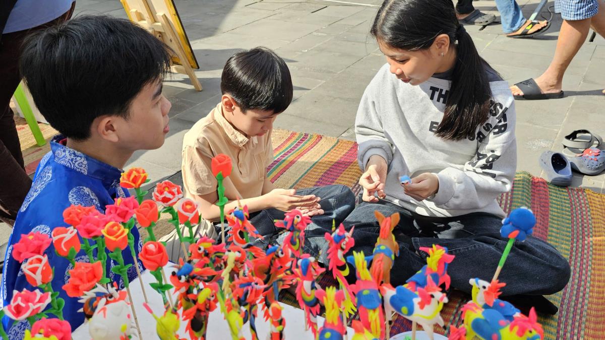 Đáng chú ý, chương trình có “Phiên chợ nhí”, tạo cơ hội để trẻ em cùng gia đình trải nghiệm kỹ năng giao tiếp, mua bán và làm việc nhóm trong môi trường văn hóa truyền thống.