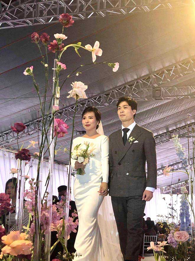 Vợ chồng Công Phượng rạng rỡ trong ngày cưới. |