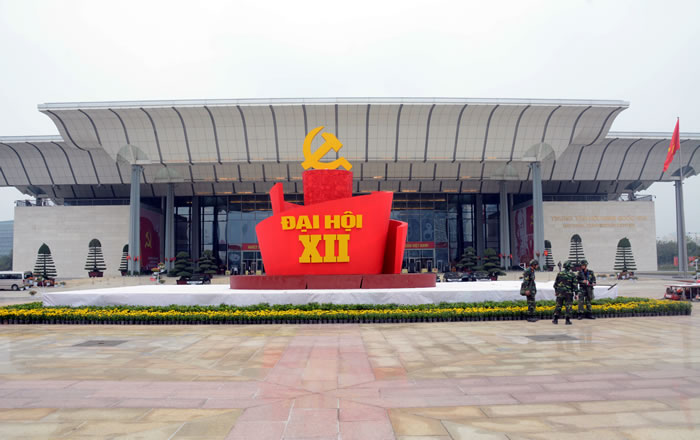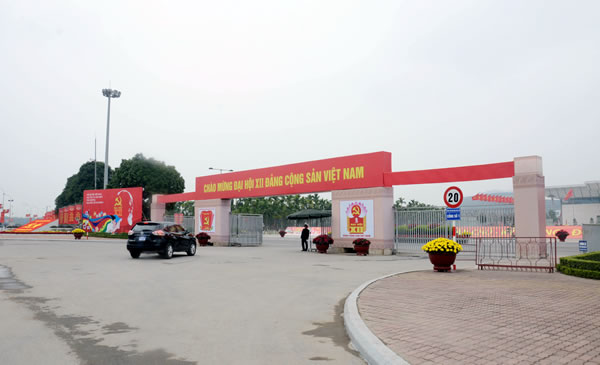 | Cổng vào Trung tâm Hội nghị Quốc gia, nơi diễn ra Đại hội XII của Đảng. |
