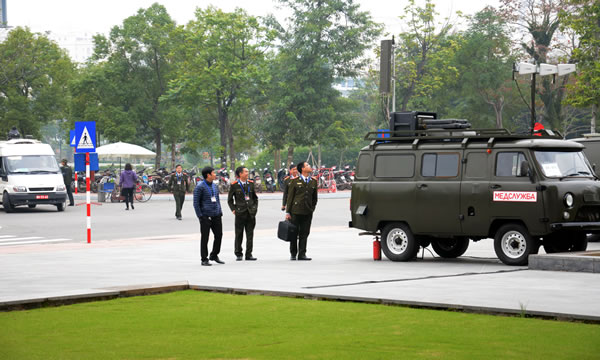 Lực lượng quân đội thực hiện các biện pháp nghiệp vụ, đảm bảo an toàn tuyệt đối cho Đại hội. |